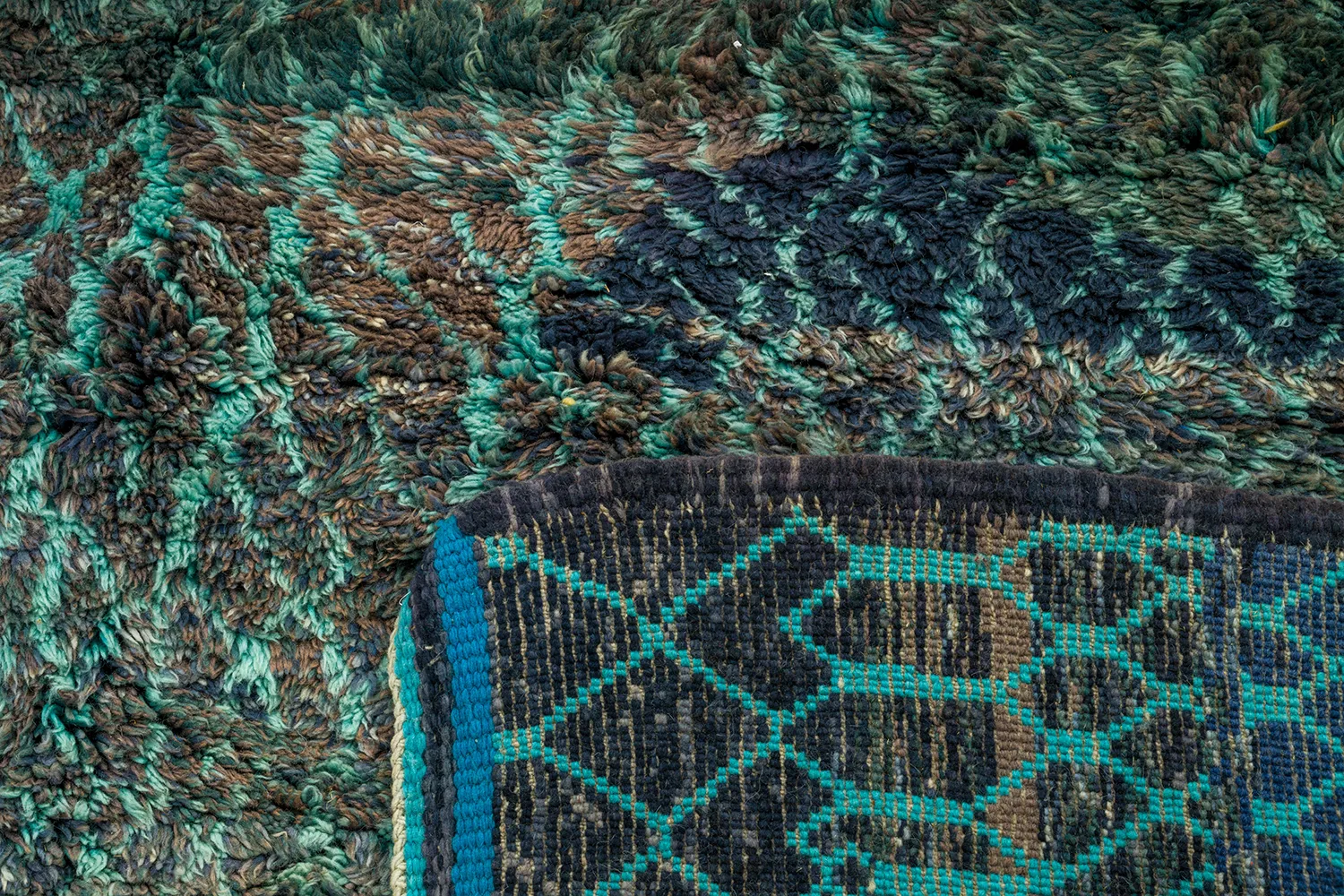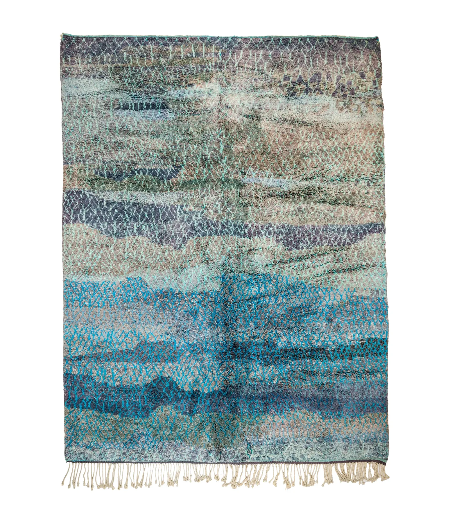 Aegean Blue with Abstract Design – A captivating blend of blues and greens, this Moroccan rug evokes the serene beauty of the Aegean Sea. The abstract design, reminiscent of swirling waves and distant horizons, creates a sense of movement and tranquility. This is a rug that will bring a touch of coastal charm to any space.