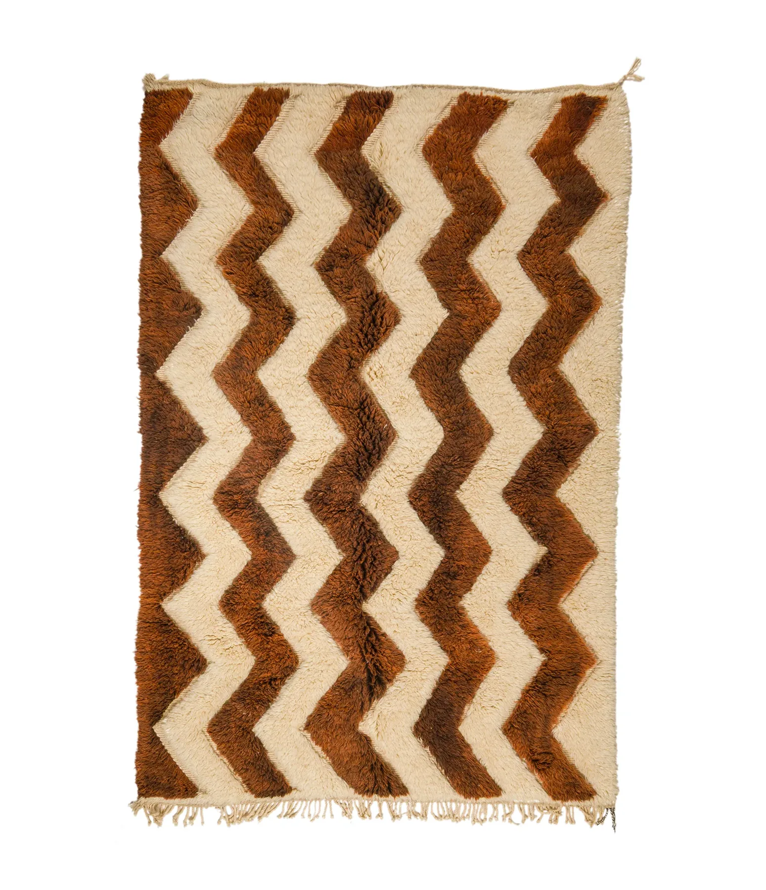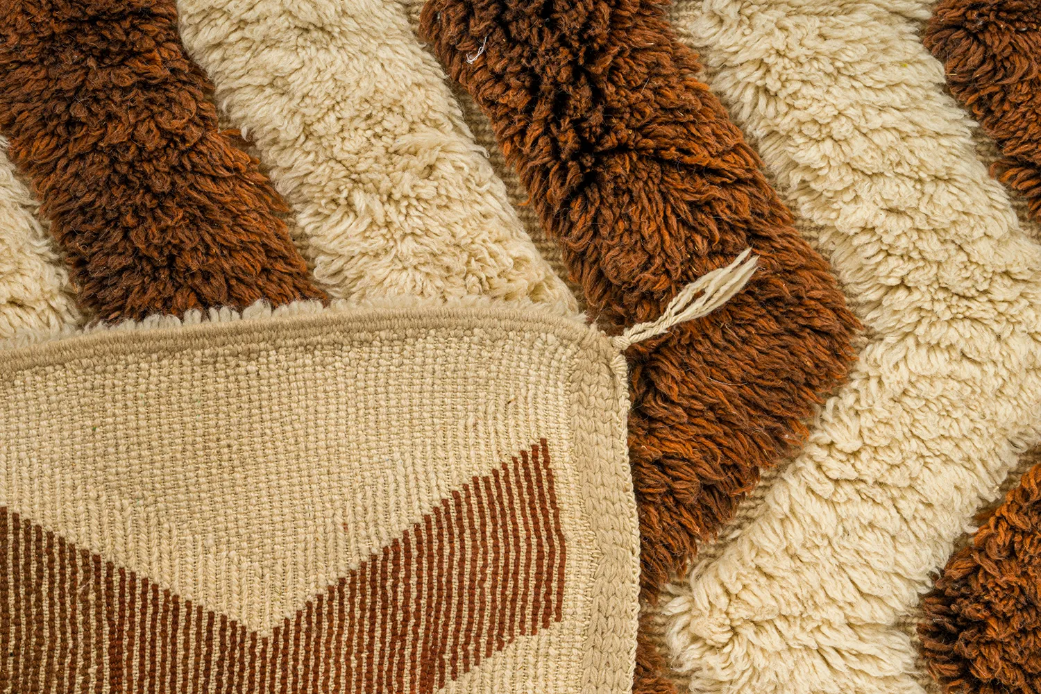 Zigzag in Chocolate & Ivory – A bold zigzag in chocolate brown pulses across a warm ivory field, its high-contrast rhythm giving this rug a sense of movement and balance. The rich, tactile pile softens the geometry, making it equally inviting and structured.