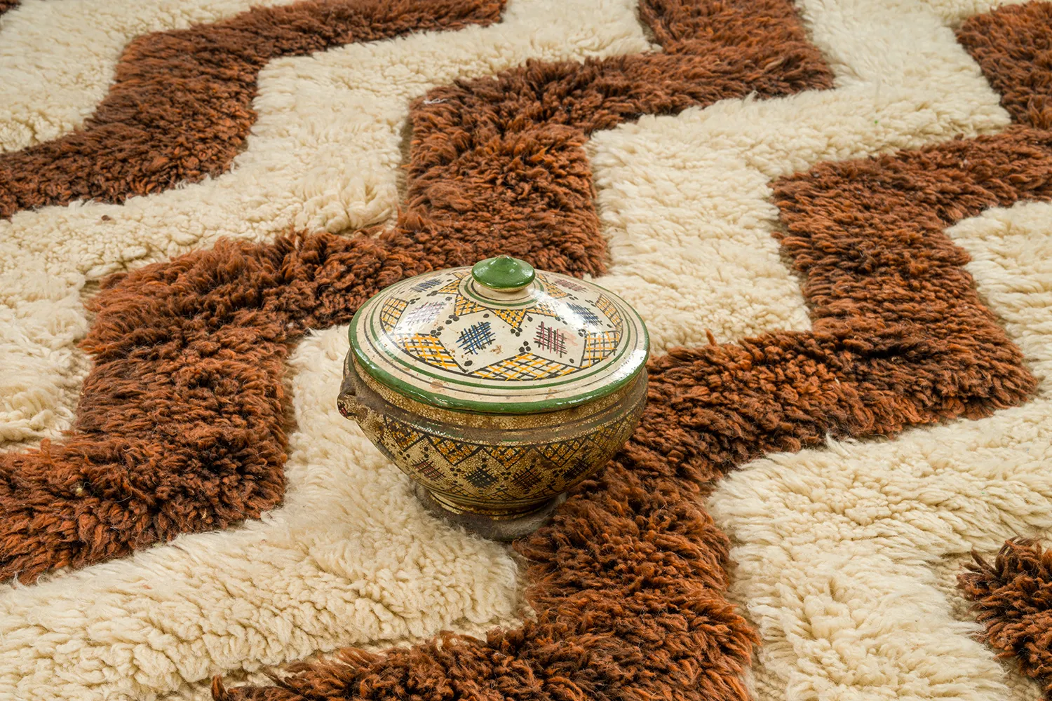 Our Beni Mrirt rugs are woven from 100% lamb’s wool, gently sheared from young sheep. Softer, warmer, and more elastic than regular wool, it’s a cruelty-free fiber that’s naturally hypoallergenic, breathable, and made to last.