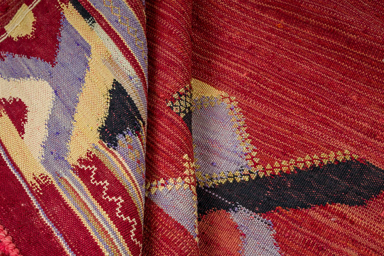 Woven from vintage Moroccan garments, these rugs carry the quiet weight of history. Its fibers gathered, rewoven, and transformed into something both familiar and rare. Unlike their iridescent counterparts, these pieces hold no sheen. Their beauty lies in restraint: the matte surface reveals a quiet richness, a soft texture that invites you to look closer.