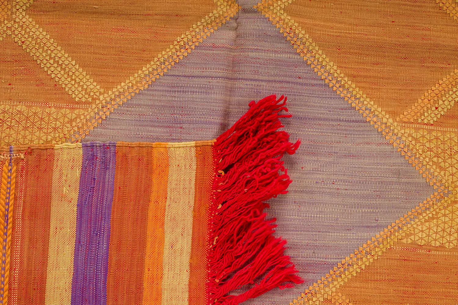 Woven from vintage Moroccan silk garments, this rare matte silk rug embodies reuse and refinement. Its soft, weighty, shine-free texture offers calm and presence, ideal for thoughtful spaces. 100% repurposed silkMatte finish with a subtle, textured surfaceHandwoven in Morocco.Lightweight and breathableRecommended for low-traffic or decorative use