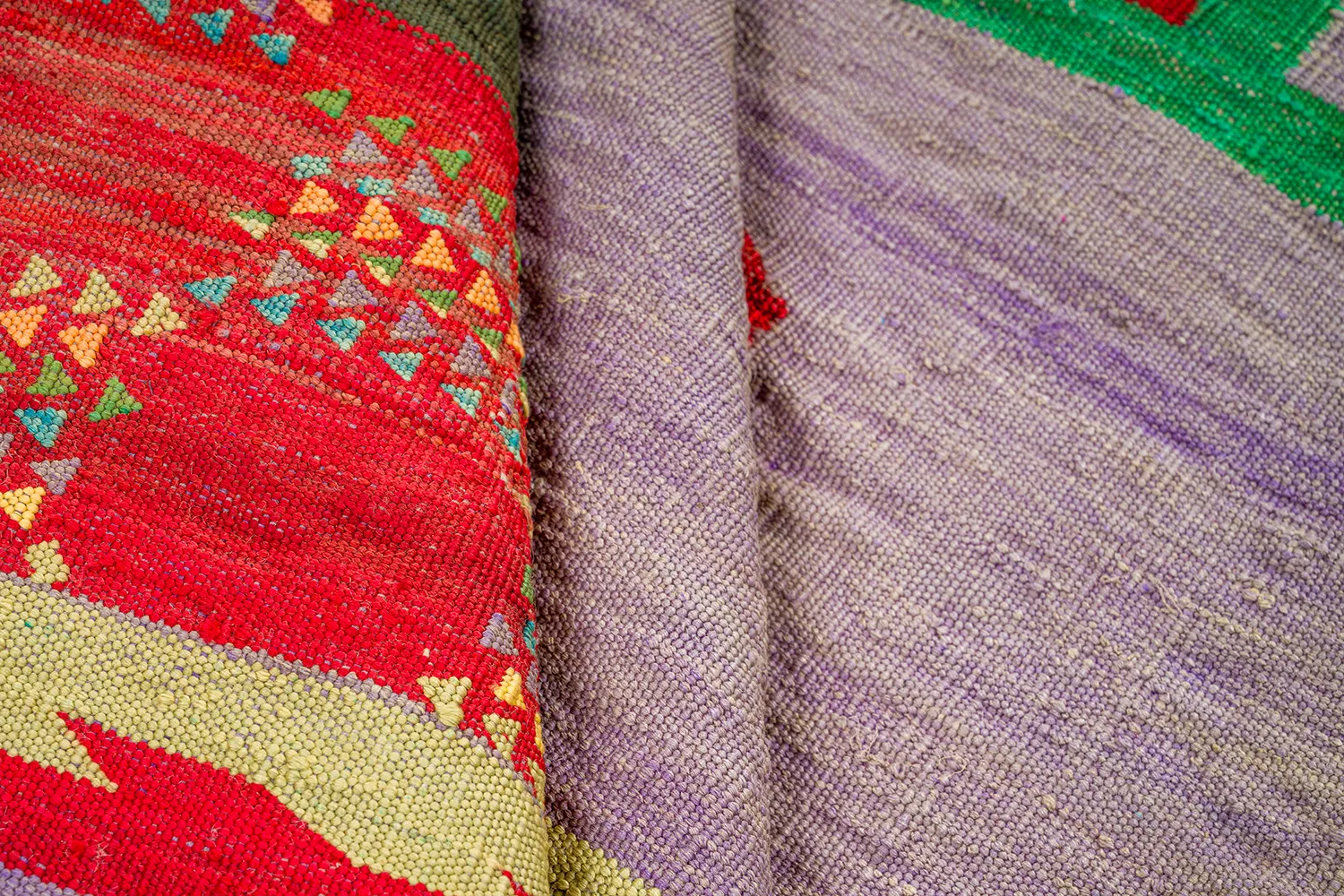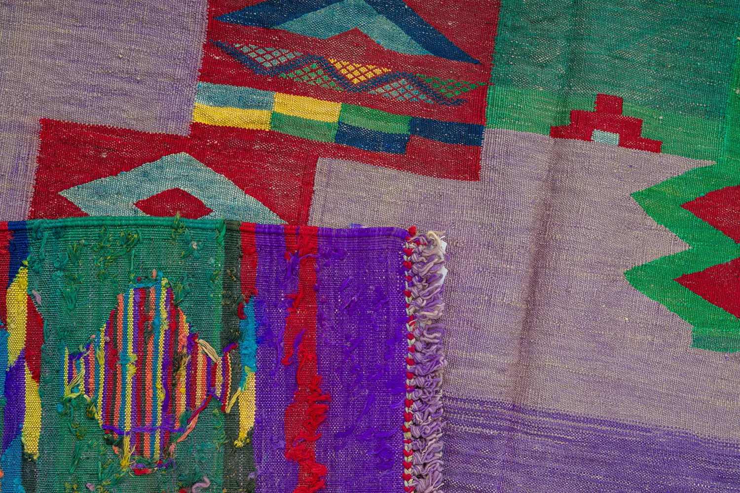 Woven from vintage Moroccan garments, these rugs carry the quiet weight of history. Its fibers gathered, rewoven, and transformed into something both familiar and rare. Unlike their iridescent counterparts, these pieces hold no sheen. Their beauty lies in restraint: the matte surface reveals a quiet richness, a soft texture that invites you to look closer.