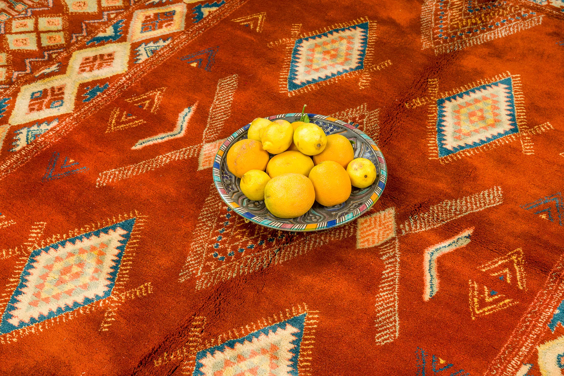 Rbati rugs are traditionally woven from high-quality wool, valued for its softness, durability, and natural warmth. Each rug we select uses pure wool fibers that age beautifully over time, making your rug both a luxury piece and a practical, long-lasting investment.
