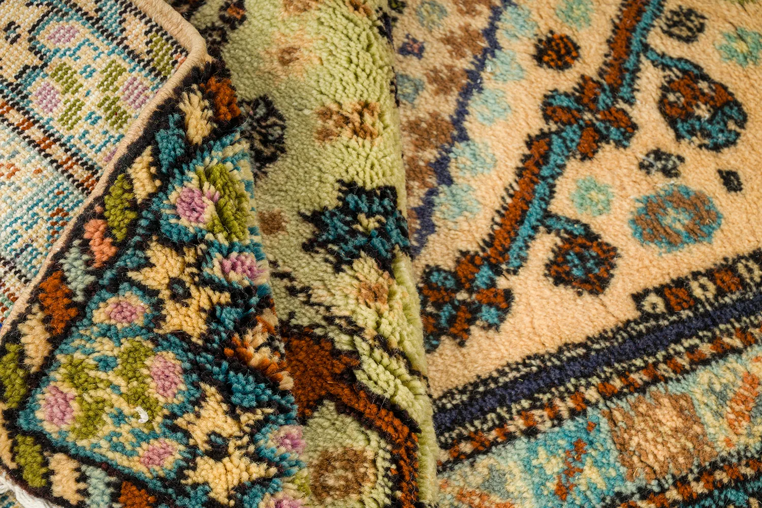Rbati rugs are traditionally woven from high-quality wool, valued for its softness, durability, and natural warmth. Each rug we select uses pure wool fibers that age beautifully over time, making your rug both a luxury piece and a practical, long-lasting investment.