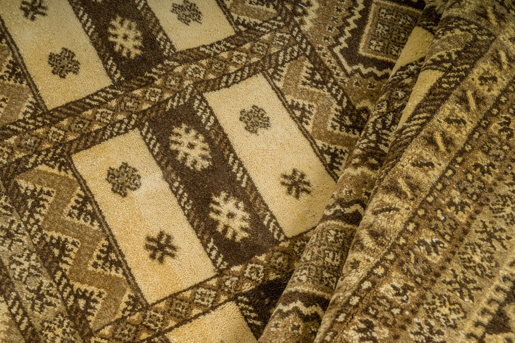 Rbati rugs are traditionally woven from high-quality wool, valued for its softness, durability, and natural warmth. Each rug we select uses pure wool fibers that age beautifully over time, making your rug both a luxury piece and a practical, long-lasting investment.